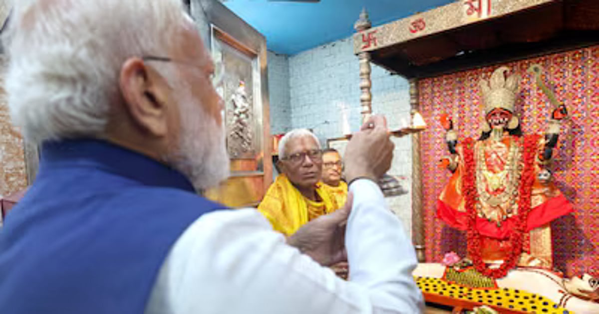 அதோடு பிரதமர் நரேந்திர மோடி கொல்கத்தாவில் உள்ள 300 ஆண்டுகள் பழமையான காளி கோயிலுக்கு சென்று வழிபட்டார். இந்த கோயில் ராமகிருஷ்ண பரமஹம்சரோடு தொடர்புடையது ஆகும். அம்மா சித்தேஷ்வரி என்று அழைக்கப்படும் இந்த கோயிலில் அம்மனுக்கு பிரசாதமாக அசைவ உணவு படைக்கப்படுவது வழக்கம். ராமகிருஷ்ண பரமஹம்சர் இந்த அம்மனுக்கு முதன் முதலில் அசைவ உணவு படைத்து வழிபட்டார். அதனை தொடர்ந்து அவர் உடல் நலம் பாதிக்கப்பட்டு இருந்தபோது பக்தர்கள் அதே அம்மனுக்கு அசைவ உணவு படையல் படைத்து ராமகிருஷ்ண பரமஹம்சர் குணமடையும்படி வேண்டிக்கொண்டனர்.