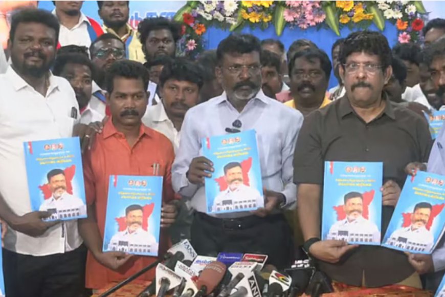 இந்த நிலையில், சென்னையில் உள்ள விசிக அலுவலகத்தில் அம்பேத்கர் பிறந்த நாளையொட்டி அவரது படத்துக்கு மரியாதை செலுத்திய அக்கட்சியின் தலைவர் தொல். திருமாவளவன் தேர்தல் அறிக்கையை வெளியிட்டார்.