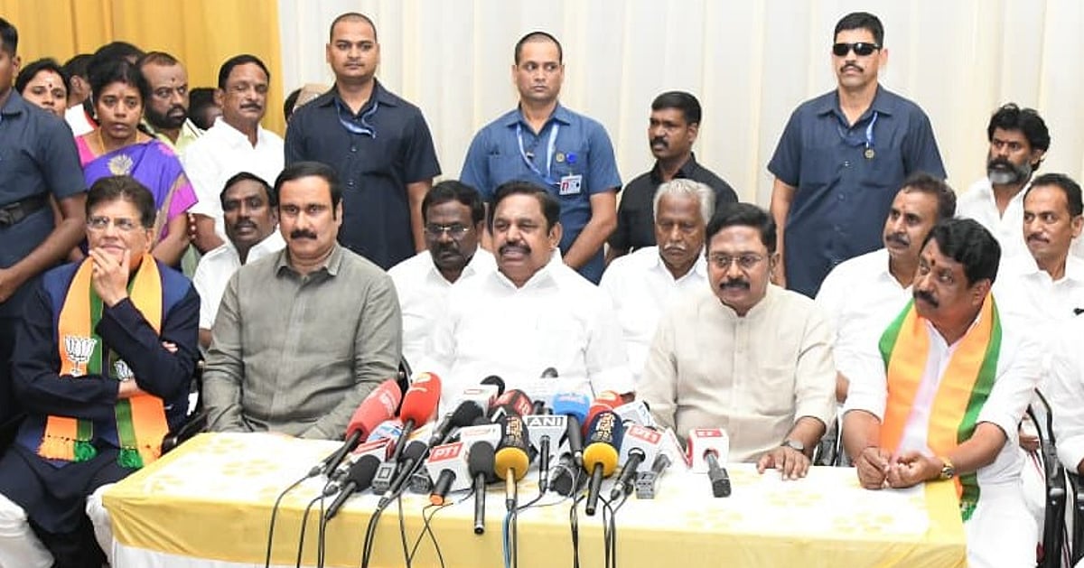 அதிமுக, பாஜகவுடன் அமமுக, பாமக, தமாகா, புதிய நீதிக்கட்சி, தமிழக மக்கள் முன்னேற்றக் கழகம், இந்திய ஜனநாயகக் கட்சி, புரட்சி பாரதம் ஆகிய கட்சிகளும் இணைந்துகொண்டன.