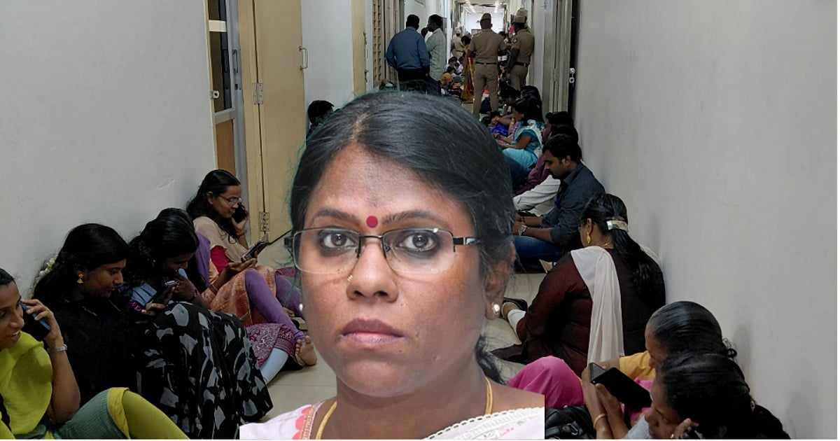 நேற்று மாலை 4 மணிக்கு ஆய்வு கூட்டத்திற்காக எங்களை கலெக்டர் வர சொன்னார்கள். எஸ்.ஐ.ஆர் சம்பந்தப்பட்ட முகாமில் பணிகளை செய்ததால் மொபைலில் சார்ஜ் இறங்கி விட்டது என்பதால் ஸ்மார்ட் ஃபோனை சார்ஜ் போட்டுவிட்டு பட்டன் போனை எடுத்துக்கொண்டு கலெக்டர் மீட்டிங்கு சென்றிருந்தேன். கலெக்டர் அந்த மீட்டிங்கில் என்ன எழுப்பி விட்டு, கேள்வி கேட்டுக் கொண்டிருந்தார். அந்த சமயத்தில் ஒரு பி.எல்.ஓ-வுக்கு போன் செய்யும்படி என்னிடம் கலெக்டர் தெரிவித்தார். நான் என்னுடைய பட்டன் போனில் இருந்து சம்பந்தப்பட்ட பி.எல்.ஏ-வுக்கு போன் செய்தேன். அப்போது ஆர்.டி.ஓ மேடம் எனது மொபைலை வாங்கி அந்த பி.எல்.ஓ-விடம் பேசினார்கள். அப்போது கலெக்டர் மேடம் அந்த போனை வாங்கி, இது யாருடையது எனக்கேட்டார்கள்.