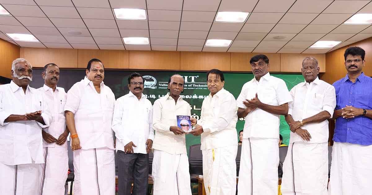 திரைப்பட பாலாசிரியர் கவிஞர் முத்துலிங்கம் பேசும்போது, “விஐடி வேந்தர் விசுவநாதனை அரசியலில் அறிமுகப்படுத்தியது அண்ணா தான். எம்ஜிஆர், ஜெயலலிதா அமைச்சரவையில் அமைச்சராக இருந்தவர். கொடுக்கும் பழக்கம் கொண்ட கொடையாளர் எம்ஜிஆர். எம்ஜிஆர் மறைந்து 38 ஆண்டு காலம் ஆகியும் தமிழக அரசியலில் புவிஈர்ப்பு விசையாக இருப்பது எம்ஜிஆர் எனும் மூன்று எழுத்து மந்திரச்சொல். யாரேனும் ஒருவர் உதவி கேட்டால் செய்யக்கூடிய மாண்பு உள்ளவர். ஏழை, எளிய மக்களின் வாழ்க்கையில் ஒளி விளக்கை ஏற்றிட அதிமுகவைத் தொடங்கினார். சாமானியவர்களையும் அடையாளப்படுத்தினார். நம் கையில் ரேகை இருக்கும். எம்ஜிஆர் கையில் இருந்தது ஈகை. அதனால் அவர் சூடினார் வாகை. அவரை போல வசதி, வாய்ப்புகள் வந்தாலும் மற்றவர்களுக்கு உதவிடும் குணம் வேண்டும். மனித நேயம் மிக்க தலைவர் எம்ஜிஆர். எல்லோர் மனதையும் கவர்ந்தவர்” என்றார்.