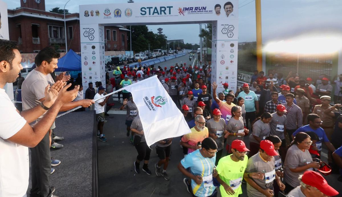 அந்த வகையில் இந்திய மருத்துவ சங்கத்தின் சென்னை கோடம்பாக்கம் கிளை சார்பில் சென்னை நேப்பியர் பாலம் அருகே நடைபெற்ற எலும்பு அடர்த்தி குறைவதால் ஏற்படும் எலும்பு பலவீனம் (ஆஸ்டியோபோரோசிஸ்), இரத்த ஓட்டம் குறைவதால் ஏற்படும் பக்கவாதம், உடல் பருமனால் ஏற்படும் நோய்கள் குறித்த விழிப்புணர்வு ஓட்டத்தை துணை முதல்வர் உதயநிதி ஸ்டாலின் இன்று (அக்.26) கொடியசைத்து தொடங்கி வைத்தார்.