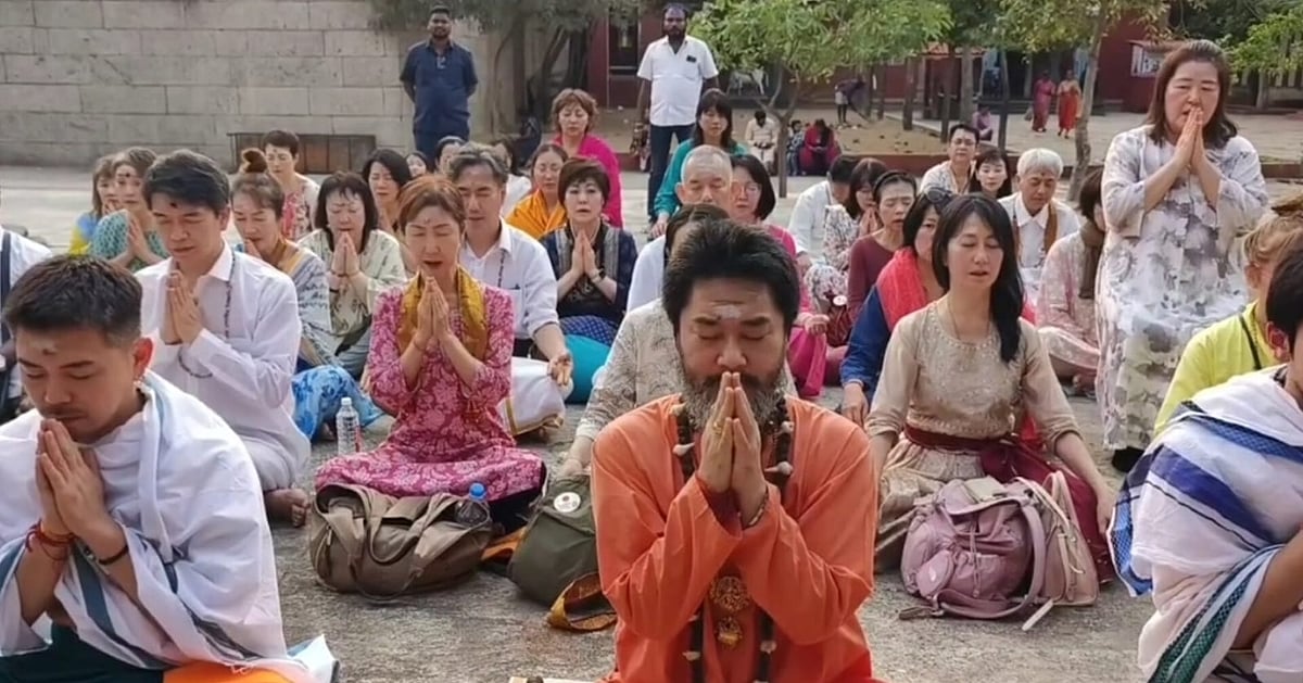 கரூர் மாநகரில் அமைந்துள்ள பிரசித்தி பெற்ற சிவாலயங்களில் ஒன்று ஸ்ரீ கல்யாண பசுபதீஸ்வரர் ஆலயம். தேவாரப் பாடல்கள் பாடப்பெற்ற தலங்களில் முதன்மையான திருத்தலம் இது. கருவூர் சித்தர் அவதரித்த ஊர் என்பதால் இங்கு கருவூராருக்கு தனி சன்னதி அமைந்துள்ளது. மிகவும் சக்திவாய்ந்த திருத்தலம் என்பதால், இந்த கோயிலுக்கு தமிழகம் முழுவதிலும் இருந்தும் தினமும் ஏராளமான பக்தர்கள் வந்து செல்கின்றனர். அதோடு, தமிழகத்தில் உள்ள 2000 ஆண்டுகால பழமையான ஆலயங்களில் ஒன்றான இத்திருத்தலம், திருஞானசம்பந்தரால் பாடல் பெற்ற தலம் என்பதும் இந்த கோயில் சம்மந்தப்பட்ட சிறப்பாகும். தற்போது, இந்து சமய அறநிலையத்துறை கட்டுப்பாட்டில் கோயில் நிர்வாகம் செயல்பட்டு வருகிறது. இந்நிலையில், ஜப்பான் நாட்டின் டோக்கியோ மாகாணத்தை சேர்ந்த 50 பேர், தமிழ்நாடு முழுவதும் கடந்த 30 நாட்களாக ஆன்மிக தலங்களுக்கு சுற்றுப்பயணம் மேற்கொண்டு வருகின்றனர். அந்த வகையில், கரூர் அருள்மிகு ஸ்ரீ கல்யாண பசுபதீஸ்வரர் ஆலயத்திற்கும் அவர்கள் வருகை தந்தனர், குறிப்பாக, கருவூரார் சித்தர் சன்னிதியை பார்ப்பதற்காகவே வருகை தந்து சித்தர் சன்னதியில் சுவாமி தரிசனம் செய்த பின்னர் கோயிலில் உள்ள அனைத்து சன்னிதிகளுக்கும் சென்று சுவாமி தரிசனம் செய்தனர். தொடர்ந்து, கல்யாண பசுபதீஸ்வரர் ஆலயத்தில் சுமார் 20 நிமிடங்கள் அமைதியாக அமர்ந்து தியானத்தில் ஈடுபட்டனர்.