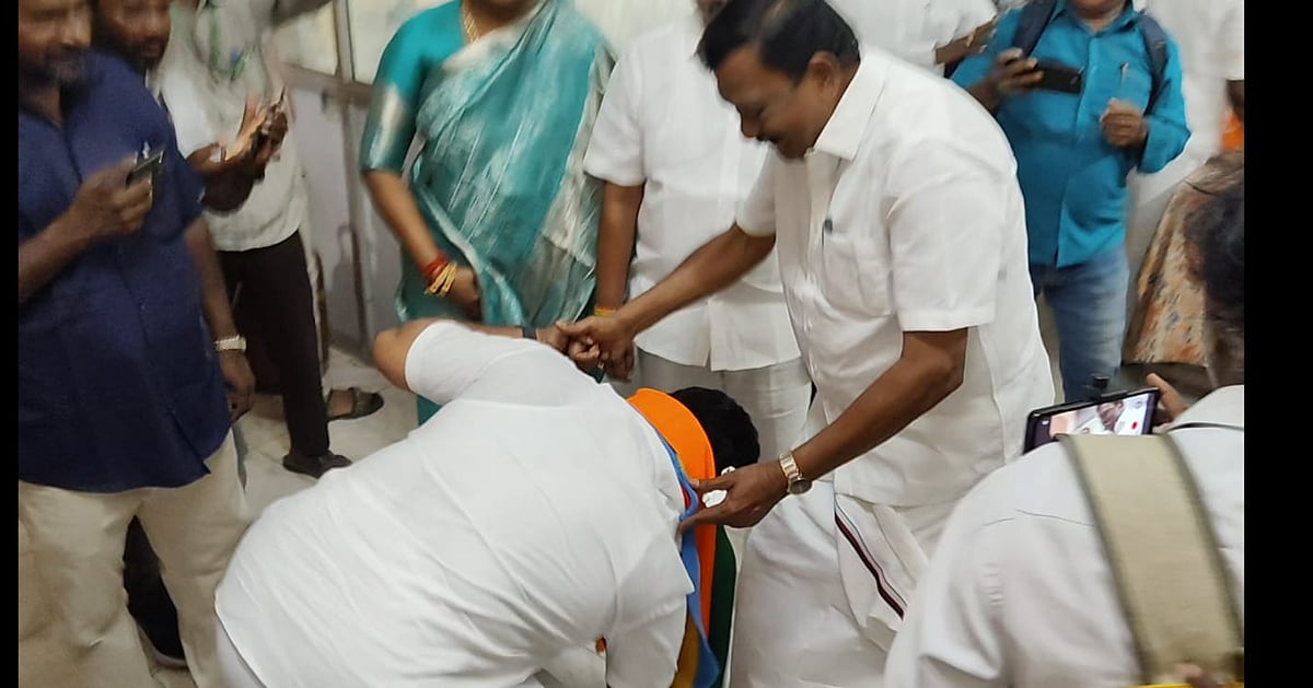 பதிலுக்கு கோவிந்தராஜனும் வணக்கம் செலுத்தியபோது திடீரென சுதாகர், தி.மு.க வேட்பாளர் கோவிந்தராஜனின் காலில் விழுந்து `அண்ணே என்னை ஆசீர்வாதம் பண்ணுங்க’ எனக் கூறினார். அதனால் பதறிப் போன கோவிந்தராஜன், அவசர அவசரமாக சுதாகரரை தூக்கி விட்டுவிட்டு அங்கிருந்து சென்றார்.
