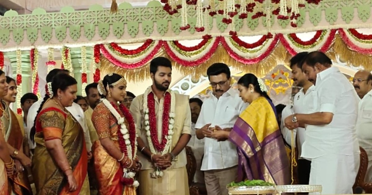 இதற்காக மண்டபத்தின் உள்பகுதி அரண்மனை போன்று அலங்கரிக்கப்பட்டிருந்தது. ஸ்டாலின் கலந்து கொண்டதால் போலீஸார் கடும் கெடுபிடி காட்டினர். இதையடுத்து வரவேற்று பேசிய உதயநிதி, `இது மூன்று தலைமுறை நட்பு” என்றார். நன்றி தெரிவித்து பேசிய அன்பில் மகேஸ், `தமிழ்நாட்டின் முதல்வரும், பெரியம்மாவும் தாய், தந்தை ஸ்தானத்தில் இருந்து எங்களை வழி நடத்துகின்றனர்’ என்ற போது துர்கா ஸ்டாலின் கண்கள் கலங்கின.