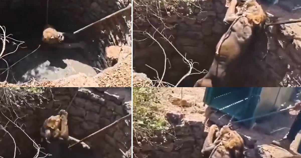 அதிர்ஷ்டவசமாக, அவ்வளவு ஆழத்தில் விழுந்தும் அந்தச் சிங்கத்திற்குச் சிறு காயம் கூட ஏற்படவில்லை.