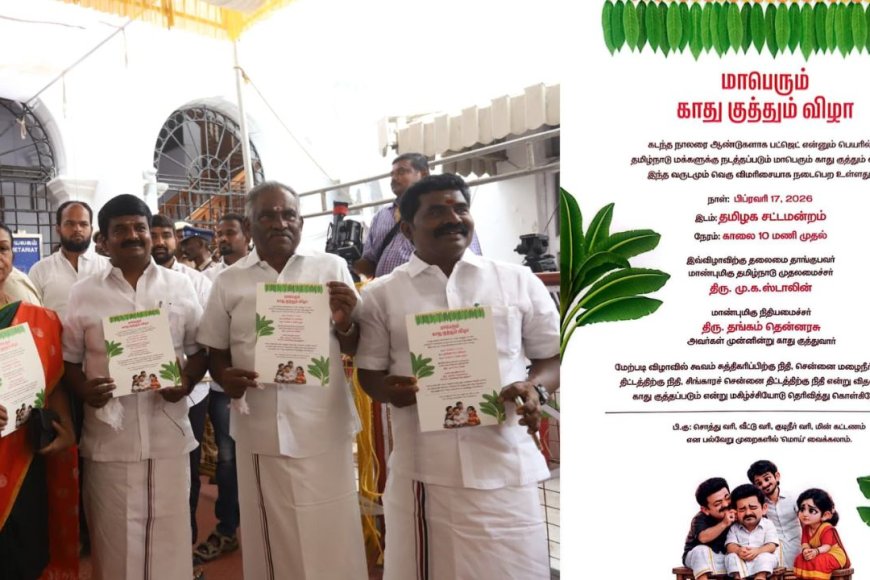 இவ்விழாவுக்கு தலைமை தாங்குபவர் மாண்புமிகு தமிழ்நாடு முதல்வர் மு.க.ஸ்டாலின். மாண்புமிகு நிதியமைச்சர் தங்கம் தென்னரசு அவர்கள் முன்னின்று காது குத்துவார்.