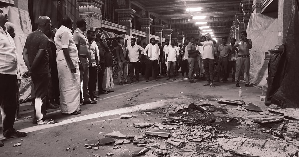 மேலும், இச்சம்பவம் குறித்து தகவல் அறிந்த சமயபுரம் காவல் நிலைய போலீஸார் நேரில் சென்று விசாரணை மேற்கொண்டதோடு, பேரிகார்டுகளை கொண்டு சன்னதி வீதியை முற்றிலும் அடைத்தனர். அம்மனை சாமி தரிசனம் செய்ய வந்த பக்தர்களுக்கு இடையே இந்த சம்பவம் பெரும் பரபரப்பை ஏற்படுத்தியது. சமயபுரம் மாரியம்மன் கோயிலில் கும்பாபிஷேகம் நடைபெற்று நான்கு ஆண்டுகள் மட்டுமே நிறைவடைந்த நிலையில், அதற்குள் மேற்கூரை இடிந்து விழுந்த சம்பவம் பக்தர்களிடமும், அப்பகுதி மக்களிடம் பெரும் அதிர்ச்சியை ஏற்படுத்தியுள்ளது.
