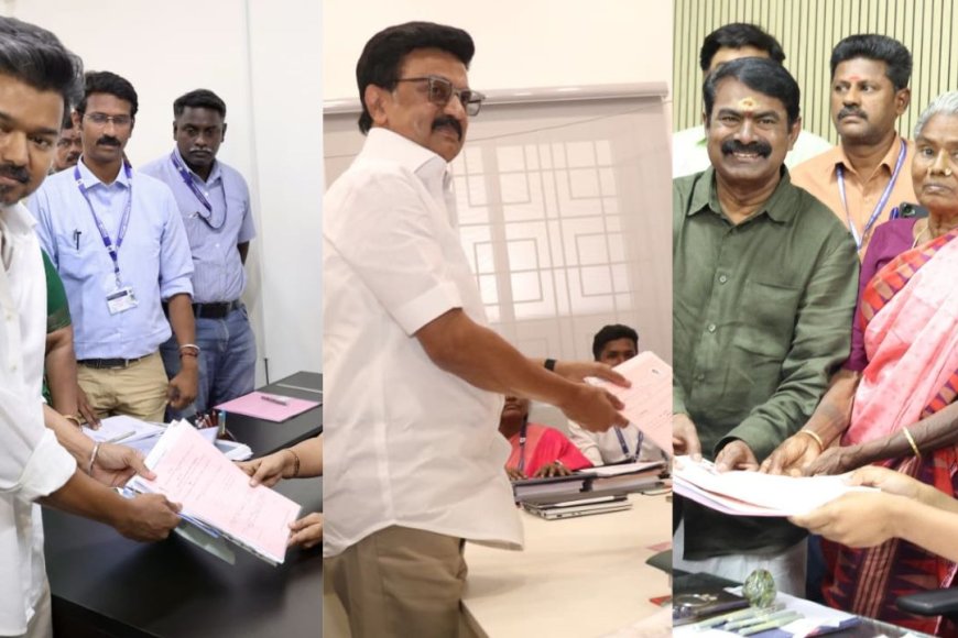 2026 தமிழ்நாடு சட்டமன்றத் தேர்தலுக்கான வேட்புமனு தாக்கல் செயல்முறை தொடங்கியுள்ளது. சீமான் தலைமையிலான நாம் தமிழர் கட்சி வேட்பாளர்கள் தங்கள் வேட்புமனுக்களைத் தாக்கல் செய்யத் தொடங்கியுள்ளனர்.
