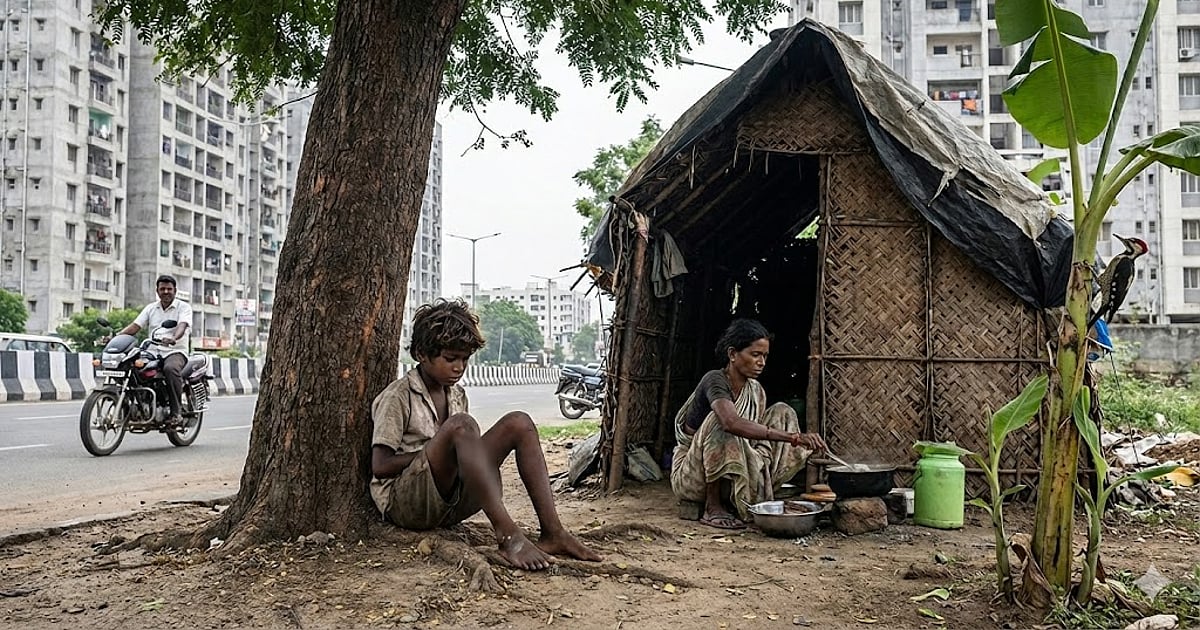 அந்தரத்தில் தொங்கும் தேன்கூடு போல நகரத்தின் பெருவெளியில் மிகப்பிரம்மாண்டமாக நிலத்தில் கட்டப்பட்டிருக்கும் கான்ங் கிரட்டு கூடுக்குள் அடைபட்டு கிடக்கின்ற மனிதர்களுக்கு மத்தியில், சாலையின் ஓரத்தில் புளிய மரத்து வரிசையின் இடையில் (அதாவது முப்பத்தி ஒன்னா நம்பர் மரத்துக்கும் முப்பத்திரெண்டா நம்பர் மரத்திக்கும்) தென்ன ஓலையால் வேயப்பட்டிருந்த குடிசையில் மகன் செம்பனும், தாய் ஜோதியும்,
