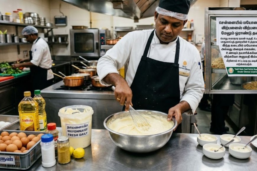 தமிழகம் முழுவதும் உள்ள உணவகங்கள், கேட்டரிங் சேவைகள் மற்றும் சில்லறை விற்பனையாளர்கள் உட்பட அனைத்து உணவு நிறுவனங்களும் மூல முட்டை அடிப்படையிலான மயோனைஸின் பயன்பாடு, விற்பனை அல்லது விநியோகத்தை உடனடியாக நிறுத்த வேண்டும். மீறுபவர்களுக்கு அபராதம் விதித்தல், உரிமம் ரத்து செய்தல் உள்ளிட்ட சட்டத்தின் கீழ் கடுமையான தண்டனை விதிக்கப்படும் என கடந்த ஆண்டு ஏப்ரல் 8-ம் தேதி அறிவித்து இருந்தது.