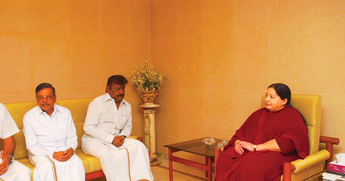 முந்தைய தேர்தலில் தேமுதிகவினாலேயே ஆட்சி கைவிட்டுப் போனது என்பதைப் புரிந்து கொண்ட ஜெயலலிதா இந்த முறை அந்தக் கட்சியை கூட்டணிக்கு இழுத்தார்.