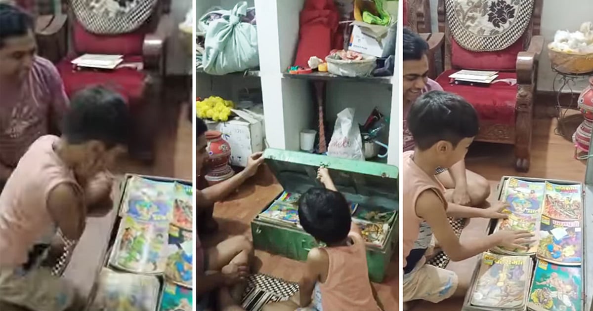 சாதாரணமாக ஒரு பழைய இரும்புப் பெட்டியைத் திறப்பதில் தொடங்கும் அந்த வீடியோ, பெட்டிக்குள் அடுக்கி வைக்கப்பட்டிருந்த பொக்கிஷங்களைக் கண்டதும் நெகிழ்ச்சியில் உறைய வைக்கிறது. அதில் 90-களின் சூப்பர் ஹீரோக்களான நாகராஜ் (Nagraj), சூப்பர் கமாண்டோ துருவ் (Super Commando Dhruva), டோகா (Doga) மற்றும் குழந்தைகளின் எக்காலத்து விருப்பமான டிங்கிள் (Tinkle) மற்றும் சச்சா சவுத்ரி (Chacha Chaudhary) போன்ற நூற்றுக்கணக்கான புத்தகங்கள் தாள்கள் கூட நைந்து போகாமல் மிகக் கவனமாகப் பாதுகாக்கப்பட்டிருந்தன.