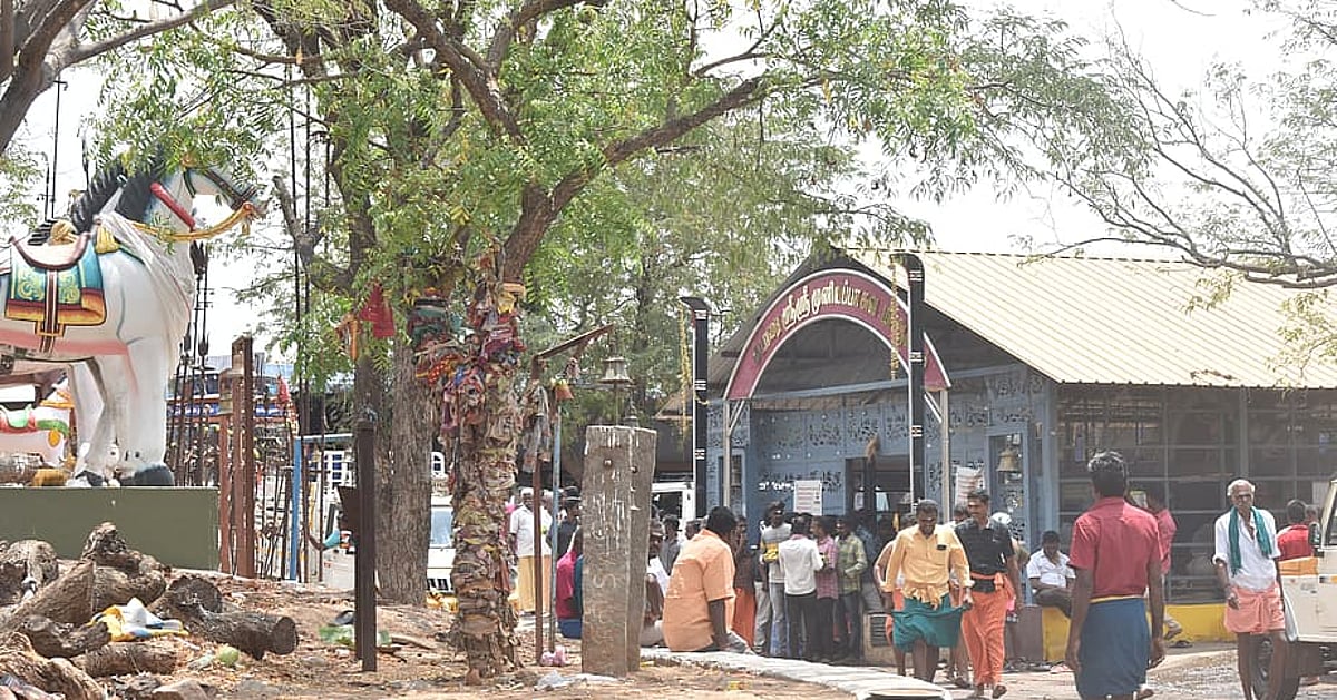 ஒரு பெண்ணால்தான் மரத்திலிருந்து கனி பறிக்கப்பட்டது என்பதை அறிந்தவர், “இங்கு அமையப்போகும் கோயிலில் பெண்களுக்கு என் தரிசனம் கிடையாது. நான் தவிமிருந்த காலத்தில் எனக்கு உதவிய முனியப்பசாமிக்கு, எனக்கு எதிரே கூடாரம் அமைத்து என்னையும் அவரையும் வழிபடலாம்” என்று கூறிவிட்டு, அப்படியே சிலையாகிவிட்டாராம்!