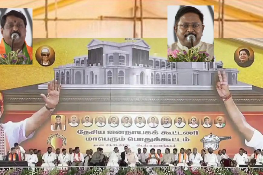 இதற்கு முன்னதாக பேசிய தமிழக பா.ஜ.க. தலைவர் நயினார் நாகேந்திரன்;-“தமிழகத்தை மீட்டெடுக்க நர்மதையின் மைந்தன் மோடி வந்துள்ளார். இது பொதுக்கூட்டம் அல்ல, இது ஒரு மாநாடு. மதுராந்தகத்தில் நடக்கும் கூட்டத்தால் சென்னை சட்டமன்றத்தில் இன்று பெரிய பதற்றம். பல செடிகளில் பூத்த மணம் வீசுகின்ற மலர்கள் மாலையாகி இறைவனிடத்தில் சேரும். அதே போல் மணம் வீசும் தேசிய ஜனநாயக கூட்டணியின் தலைவர்கள் இன்று ஒன்று சேர்ந்திருக்கிறார்கள்.