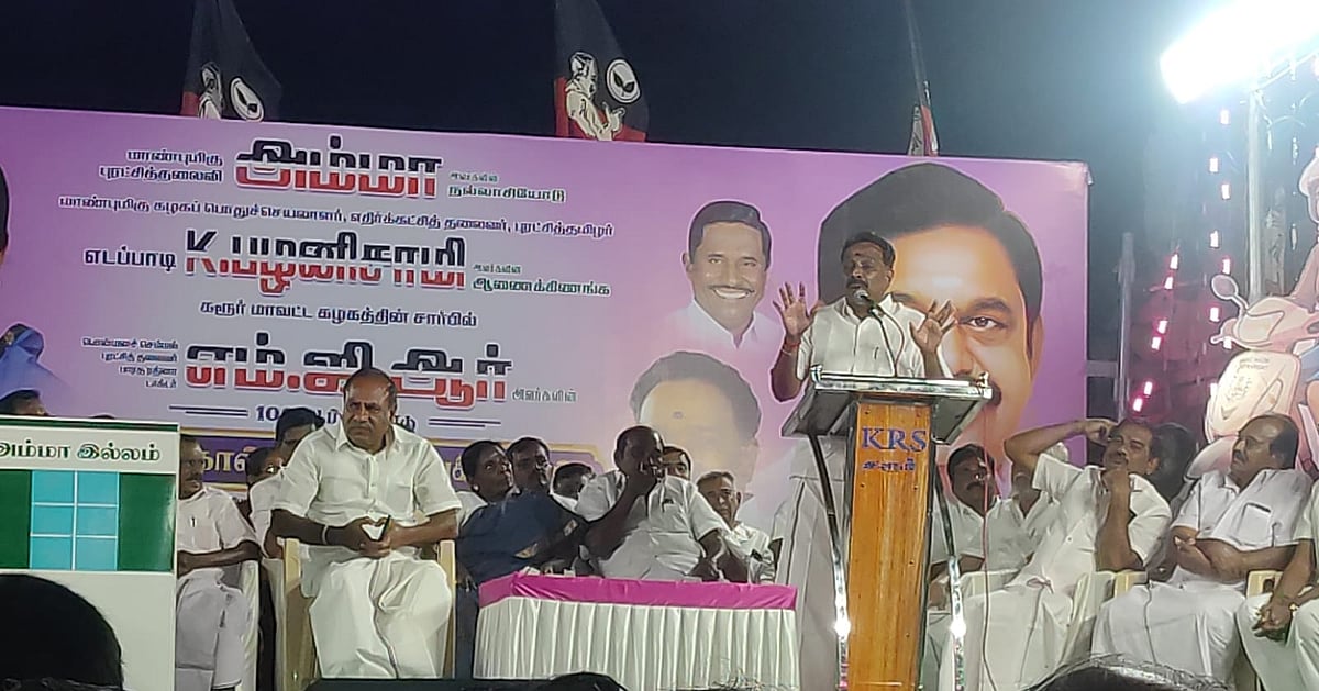 கரூர் சட்டமன்றத் தொகுதிக்கு உட்பட்ட கரூர், தான்தோன்றிமலை பழைய நகராட்சி அலுவலகம் அருகில் கரூர் மாவட்ட அ.தி.மு.க சார்பில் முன்னாள் முதல்வர் எம்.ஜி.ஆரின் 109-வது பிறந்தநாள் விழா பொதுக்கூட்டம் நடைபெற்றது.