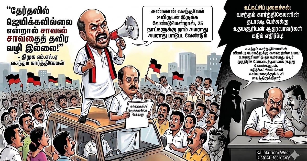 அதன் மாவட்டச் செயலாளர் எங்கள் எம்.எல்.ஏ உதயசூரியன்தான். அவர் இருக்கும்போது இவர் முந்திரிக் கொட்டைத்தனமாக நடந்து கொண்டதுடன், எதிர்க்கட்சிகள் கேலி செய்யுமளவுக்கும் பேசி வைத்திருக்கிறார்” என்று கடுகடுக்கின்றனர் மேற்கு மாவட்டச் செயலாளர் உதயசூரியனின் ஆதரவாளர்கள்.