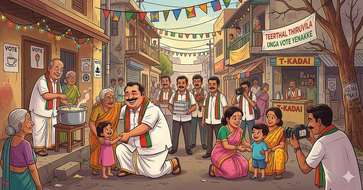 தேர்தல் என்பது வெறும் ஆட்சி மாற்றம் மட்டுமல்ல, அது ஒரு மாபெரும் `நடிப்புத் திருவிழா’. இந்த 30 நாட்கள் அவர்கள் நம்மைத் தேடி வருவார்கள், அடுத்த 1800 நாட்கள் நாம் அவர்களைத் தேடி அலையப் போகிறோம் என்பது தெரிந்தும், இந்த `கஞ்சி குடித்தல்’ மற்றும் `குழந்தை கொஞ்சல்’ நாடகத்தைப் பார்த்து ரசிப்பதைத் தவிர நமக்கு வேறு வழியில்லை.