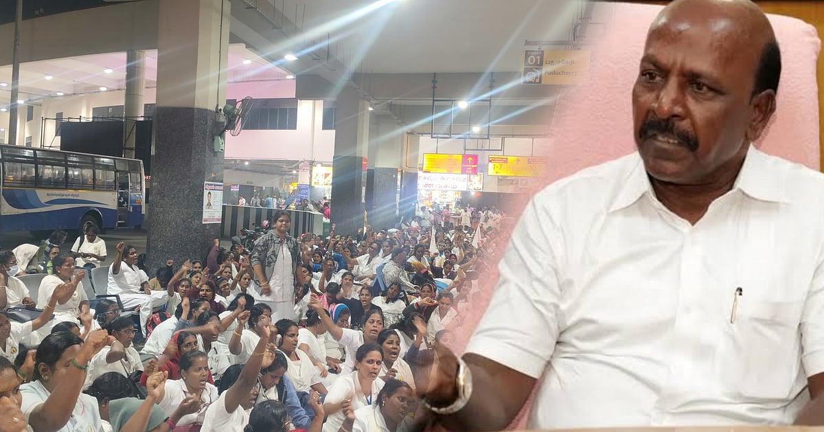 6 மணிக்கு மேல் காவல்துறையினர் செவிலியர்களை குண்டுக்கட்டாக கைது செய்தனர். கைதானவர்களை பேருந்தில் அடைத்து நகருக்கு வெளியே அழைத்துச் சென்று கிளாம்பாக்கம் பேருந்து நிலையம் அருகே விடுவித்திருக்கின்றனர். பேருந்து நிலையத்தின் ப்ளாட்பார்மில் கூடிய 700 க்கும் மேற்பட்ட செவிலியர்கள் இரவு முழுவதும் அங்கே அமர்ந்து போராட்டத்தை தொடர்ந்திருக்கின்றனர். அதிகாலை 4 மணியளவில் காவல்துறையினர் அவர்களை கைது செய்து ஊரப்பாக்கத்திலுள்ள ஒரு தனியார் மண்டபத்தில் அடைத்து வைத்திருக்கின்றனர்.