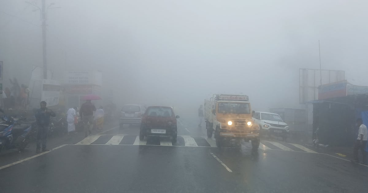 நீலகிரி: காலநிலையில் திடீர் மாற்றம்; இருளில் மூழ்கிய நகரம்; முடங்கிய போக்குவரத்து | Foggy Clicks