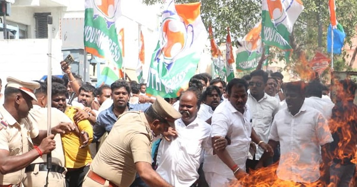 அதற்கு எதிர்ப்பு தெரிவிக்கும் விதமாக இன்று பா.ஜ.க அலுவலகம் முன்பு ஒன்று திரண்ட காங்கிரஸ் கட்சியினர், ராகுல் காந்தியின் உருவ பொம்மையை எரித்தவர்களை கைது செய்யுமாறு கோஷமிட்டனர். அதேபோல பா.ஜ.க-வுக்கு எதிராகவும் கோஷங்களை எழுப்பினர். தொடர்ந்து பா.ஜ.க.வின் அலுவலகத்தையும் முற்றுகையிட முயற்சி செய்தனர். ஆனால் போலீஸார் பேரிகார்டுகள் மூலம் அவர்களை தடுத்து நிறுத்தினர்.