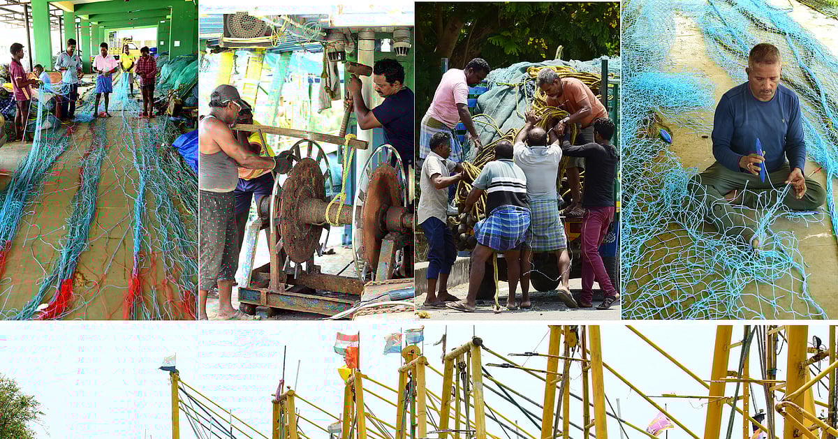 மீன்பிடி தடைக்காலத்தை அடுத்து மீனவர்கள் தங்கள் படகுகள் மற்றும் வலைகளை சீரமைக்கும் பணியின் புகைப்படத் தொகுப்பு | Photo Album