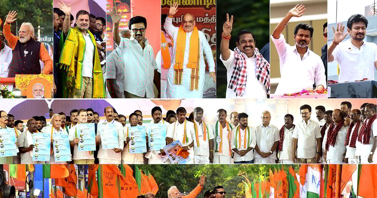 புதுச்சேரி தேர்தலை முன்னிட்டு பிரதமர் மோடி, காங்கிரஸ் தலைவர் ராகுல்காந்தி, திமுக தலைவர் மு.க.ஸ்டாலின், மத்திய உள்துறை அமைச்சர் அமித்ஷா, அதிமுக பொதுச்செயலாளர் எடப்பாடி பழனிச்சாமி, தவெக தலைவர் விஜய், தமிழக துணை முதல்வர் உதயநிதி உட்பட பல்வேறு தலைவர்களின் பிரசார புகைப்படத் தொகுப்பு.