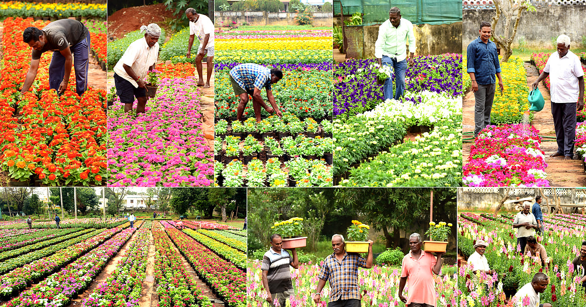 புதுச்சேரி மலர் கண்காட்சிக்காக உள்ளூரிலேயே வளர்க்கப்பட்ட 40,000 பூ செடிகள் பூத்துக் குலுங்கும் காட்சிகளின் புகைப்பட தொகுப்பு.