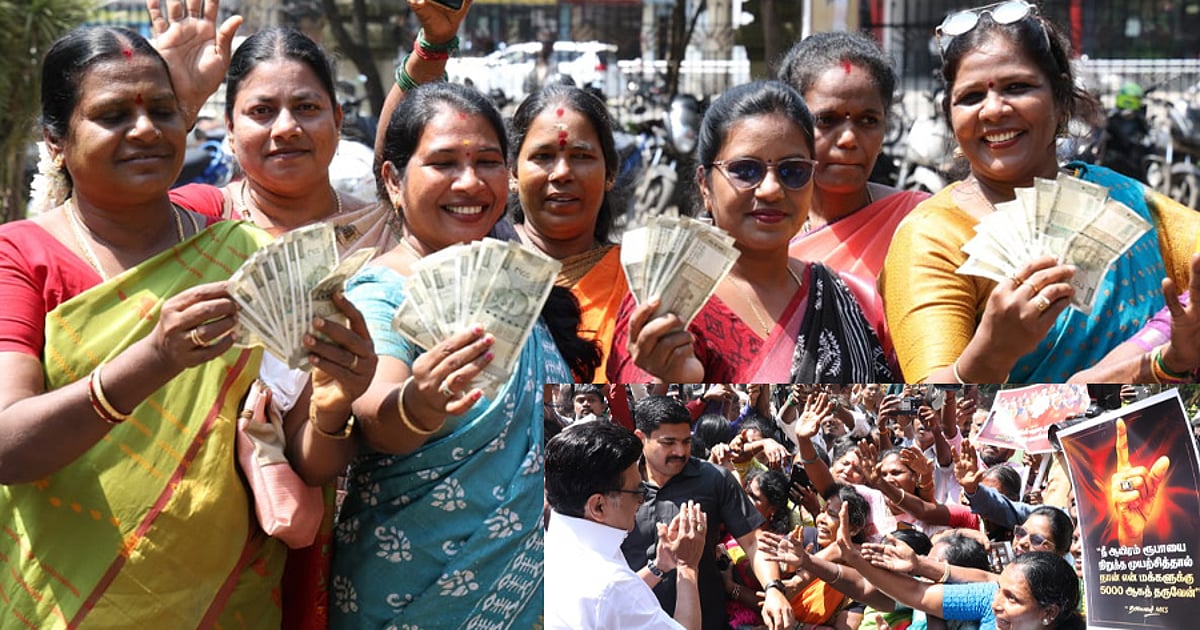 மகளிருக்கு ரூ.5000 : அண்ணா அறிவாலயத்தில் ஆட்டம், பாட்டம் – முதல்வருக்கு நன்றி தெரிவித்த பெண்கள்