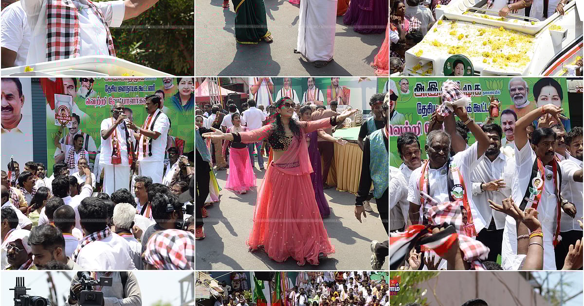 கோவையில் அதிமுக வேட்பாளர்கள் அம்மன் அர்ஜுனன் , ஜெயராமை ஆதரித்து பொதுச்செயலாளர் பழனிசாமி பிரசாரம் செய்தார். வெயிலின் தாக்கத்தினால் மயக்கமடைந்த அம்மன் அர்ஜுனன், மேடையிலிருந்து இறங்கினார். இறுதியாக மீண்டும் மேடை ஏறி இரு வேட்பாளர்களும் தொண்டர்கள் முன்னிலையில் விசிலடித்து ஆடினர்.