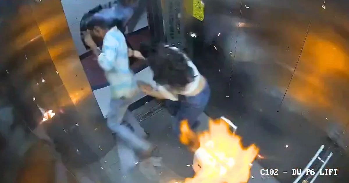 பலூன் எடுத்து வந்த நபர் லிஃப்டில் கீழே விழுந்து கிடந்தார். அவருக்கும் தீக்காயம் ஏற்பட்டது. இது குறித்து குடியிருப்பாளர்கள் போலீஸாருக்கு தகவல் கொடுத்தனர். போலீஸார் ராஜ்குமார் மீது வழக்கு பதிவு செய்தனர். இது குறித்து போலீஸார் கூறுகையில், “‘சம்பவம் நடந்த கட்டடத்தில் வசிக்கும் அர்பித் ஜெயின் என்பவர் தனது குடும்ப உறுப்பினர் ஒருவரின் பிறந்தநாளைக் கொண்டாட பலூன் ஆர்டர் செய்திருந்தார்.