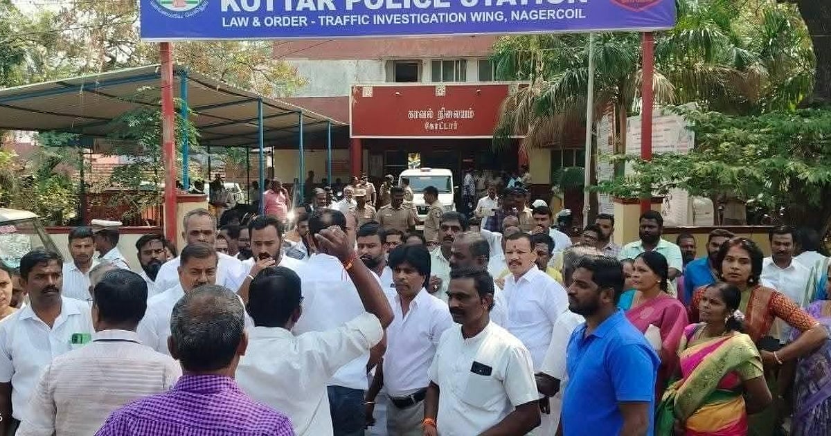 இதை அடுத்து பா.ஜ.க-வினர் டதி ஸ்கூல் ஜங்சன் பகுதியில் நேற்று இரவு மறியல் போராட்டத்தில் ஈடுபட்டனர். அவர்களிடம் பேச்சுவார்த்தை நடத்திய போலீஸார் காலையில் சம்பந்தப்பட்ட நபர்களைக் கைது செய்வதாக உறுதி கூறியதை அடுத்து போராட்டத்தைக் கைவிட்டனர்.