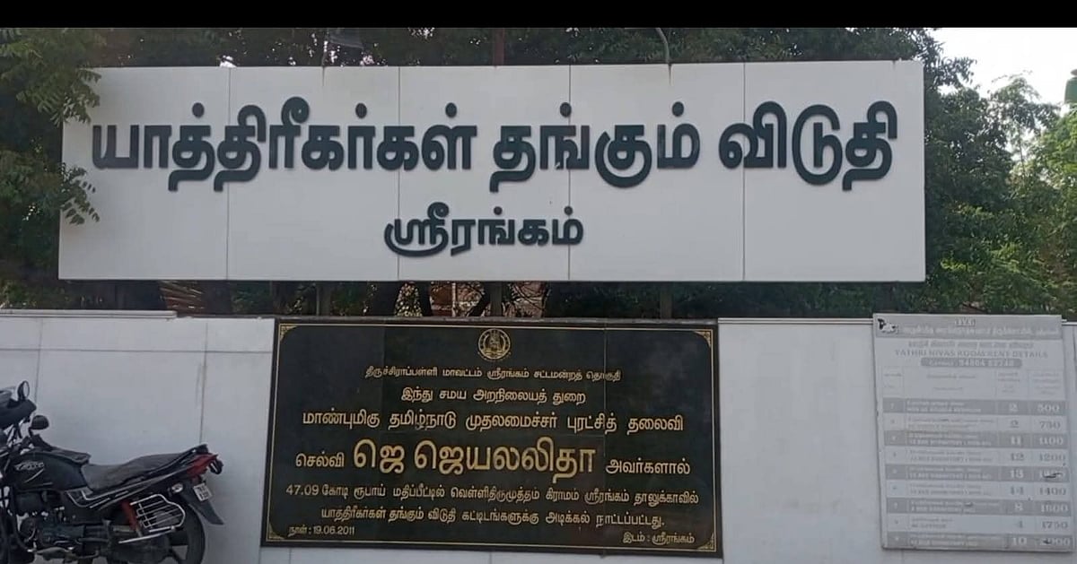 பூலோக வைகுண்டம் என அழைக்கப்படும் திருவரங்கம் ரெங்கநாதர் கோயிலுக்கு வருகை தரும் பக்தர்களின் வசதிக்காக அருகாமையில் உள்ள கொள்ளிடக்கரையில் யாத்திரி நிவாஸ் தங்கும் விடுதி ஒன்று கட்டப்பட்டுள்ளது. இது, இந்து சமய அறநிலையத்துறைக்குச் சொந்தமானது. இந்த தங்கும் விடுதியை அறநிலையத்துறை அதிகாரிகள் பராமரித்து வருகின்றனர். தற்போது, வைகுண்ட ஏகாதசி விழா வருகிற 30-ம் தேதி நடைபெற உள்ள நிலையில், ஏராளமான பக்தர்கள் திருவரங்கத்துக்கு வருகை தந்தவண்ணம் உள்ளனர். அந்த வகையில், கடந்த 10-ம் தேதி தஞ்சாவூர் மாவட்டம், திருவையாறு பகுதியைச் சேர்ந்த சுவாமிநாதன் (வயது: 67), இவரது மனைவி செண்பகவள்ளி (65), இவர்களது 42 வயதுடைய திருமணம் ஆகி விவாகரத்தான மூத்த மகள் பவானி , 37 வயதுடைய கண்பார்வையற்ற மகள் ஜீவா ஆகிய இரண்டு மகள்களுடன் ஸ்ரீரங்கம் வந்துள்ளனர்.