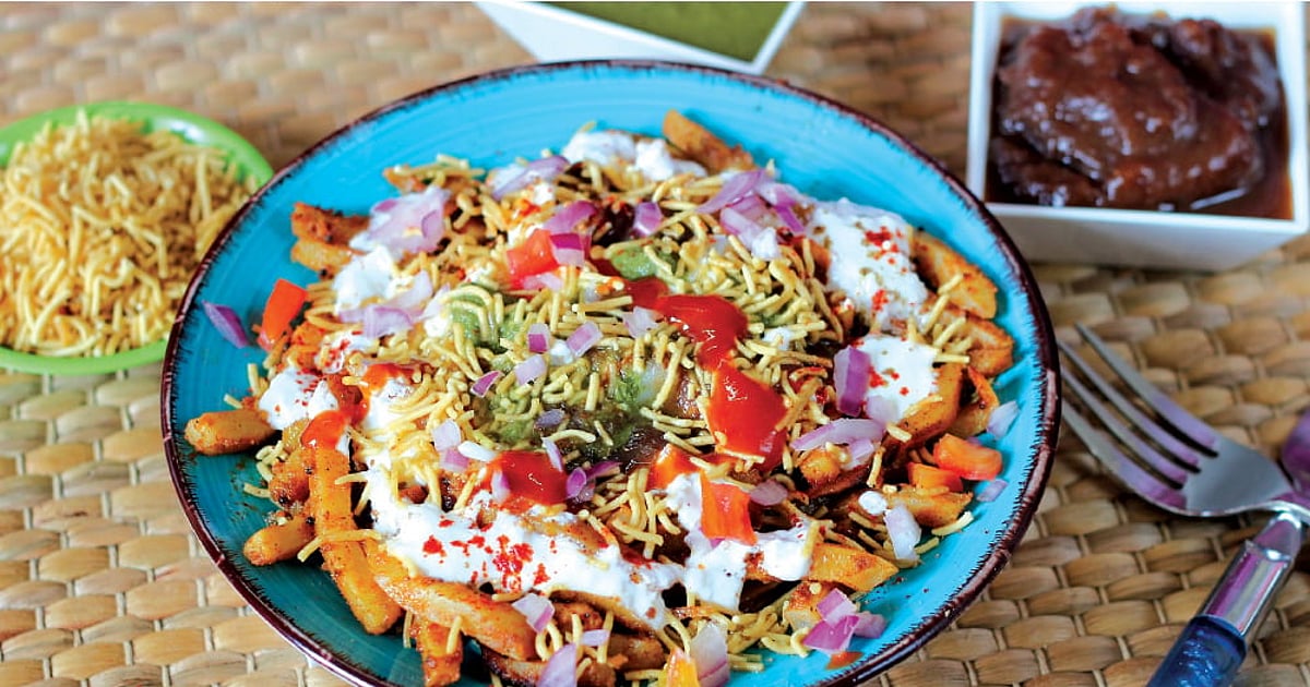 ஒரு தட்டில் சிறிது உருளைக்கிழங்கு கலவையை வைத்து அதன் மேல் சிறிது தயிர், பூண்டுச் சட்னி, இனிப்புச் சட்னி, பச்சைச் சட்னி ஆகியவற்றை ஒன்றன் பின் ஒன்றாக ஊற்றவும். பிறகு அதன் மீது சாட் மசாலா, வறுத்த சீரகத்தூள், மிளகாய்த்தூள், ஓமப்பொடி (சேவ்), கொத்தமல்லி தூவிப் பரிமாறவும்.