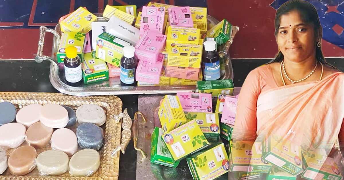 மயிலாடுதுறை மாவட்டம் கொள்ளிடம் அடுத்த அனுமந்தபுரம் பகுதியைச் சேர்ந்தவர் உஷா ராணி(45). ஏ.என்.எம் முடித்த இவரோ தற்போது மூலிகை சோப்பு, மூட்டுவலி தைலம், ஹெர்பல் டை போன்ற 18- க்கும் மேற்பட்ட பொருட்களை தயாரித்து தமிழ்நாட்டின் பல்வேறு மாவட்டங்களிலும் விற்பனை செய்து, மயிலாடுதுறை மாவட்டத்தின் வளர்ந்து வரும் தொழிலபதிராக திகழ்கிறார்.