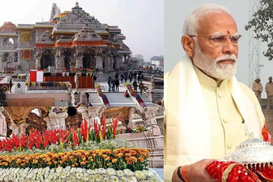 ராமர் கோயிலும் அயோத்தி நகரமும் மலர்களைக் கொண்டு அலங்கரிக்கப்பட்டு வருகின்றன. இந்த புனித நிகழ்வுக்காக அயோத்தி நகரம் முழுவதையும் அலங்கரிக்க 100 டன் பூக்கள் பயன்படுத்தப்பட்டுள்ளன.