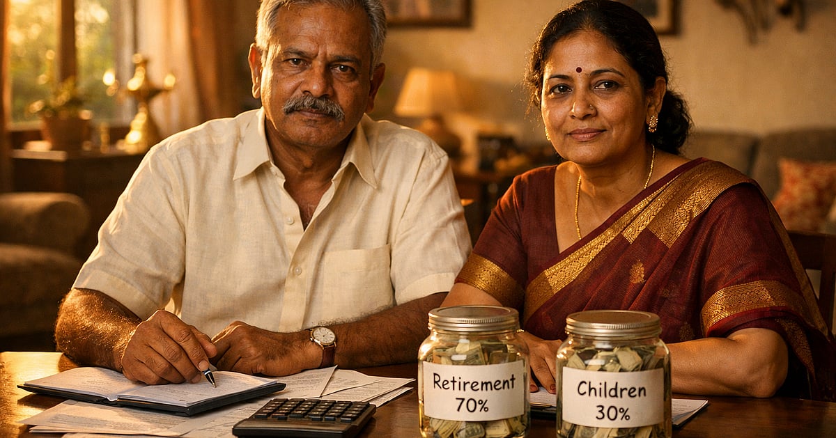 விடை: 90% பிள்ளைகளுக்கு, 10% உங்களுக்கு என்றால் இது தியாகம் அல்ல; தற்கொலைக்குச் சமம். உங்கள் ஓய்வுக்காலப் பணத்தை (Retirement Corpus) பிள்ளைகளுக்காக முழுவதுமாக அளிப்பது, எதிர்காலத்தில் உங்களையே அவர்களுக்குச் சுமையாக்கி விடும்.