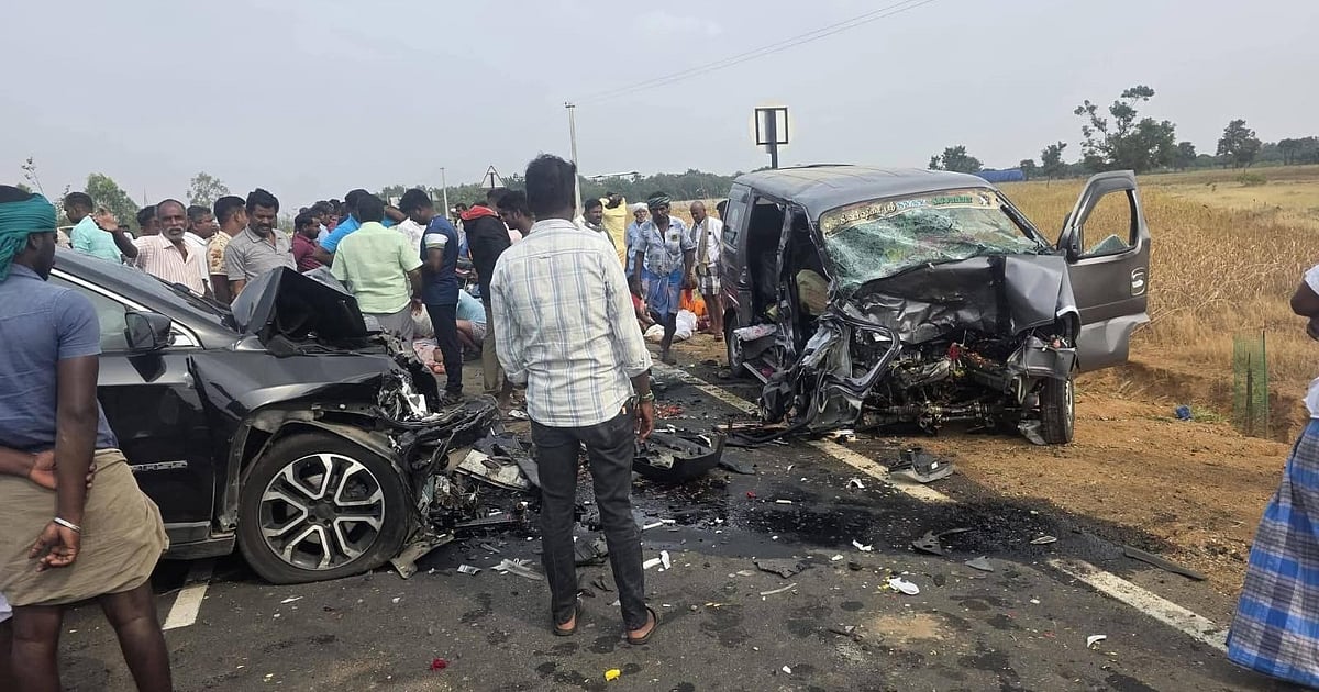 குலதெய்வ கோயிலில் சாமி கும்பிட்ட பின் திங்கள்கிழமை காலை ராமநாதபுரத்திற்கு திரும்பிக் கொண்டிருந்தனர். பரளச்சி அருப்புக்கோட்டை சாலையில் சென்று கொண்டிருந்த இவர்களது கார், அய்யனார்குளம் கிராமம் அருகே எதிரே வந்த இருசக்கர வாகனத்தின் மீது மோதாமல் இருக்க காரினை ஓட்டிய சோலை செல்வம் காரினை திருப்பியுள்ளார். அப்போது எதிரே வந்த மற்றொரு கார் மீது சோலையப்பன் குடும்பத்தினர் சென்ற கார் நேருக்கு நேர் மோதியது.