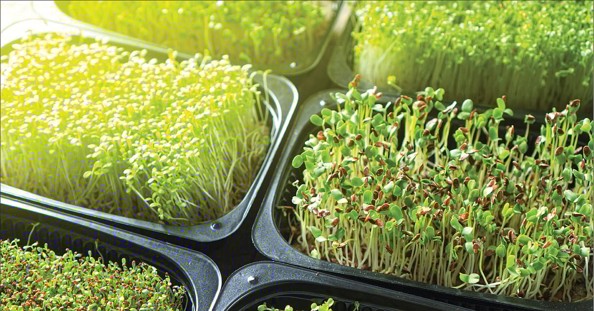 தட்டில் மண் அல்லது தேங்காய் நாரைப் பரப்பி, அதன் மேல் தரமான விதைகளைத் தூவ வேண்டும். பிறகு லேசாகத் தண்ணீர் தெளித்து, போதிய சூரிய ஒளி படும் இடத்தில் வைக்க வேண்டும். சுமார் 4 முதல் 10 நாள்களுக்குள் குட்டிக் குட்டி இலைகளுடன் மைக்ரோகிரீன்ஸ் வளர்ந்துவிடும். அதன் பிறகு அவற்றை வெட்டி எடுத்து உணவில் சேர்த்துக்கொள்ளலாம். எல்லோருமே வீட்டிலேயே இவற்றை எளிதாக வளர்க்க முடியும்.