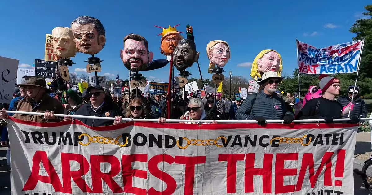 வாஷிங்டன் டிசியின் லிங்கன் மெமோரியல் முதல் நேஷனல் மால் வரை நூற்றுக்கணக்கானோர் அணிவகுத்துச் சென்றனர். “மகுடத்தைக் கீழே போடு, கோமாளியே” போன்ற வாசகங்கள் அடங்கிய பதாகைகளை ஏந்திச் சென்றனர்.