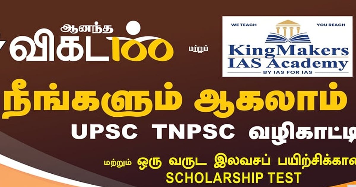 “UPSC/TNPSC குரூப் -1, 2 -தேர்வுகளுக்குத் தயாராகும் மாணவர்களுக்கு உதவும் வகையில் ஆனந்த விகடனும் King Makers IAS அகாடமியும் இணைந்து கோயம்புத்தூரில் ஓர் இலவசப் பயிற்சி முகாமை நடத்தத் திட்டமிட்டிருக்கிறது.